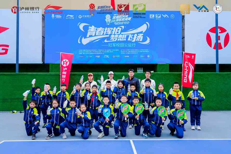 为提升参赛体验、丰富赛事内涵,主办方同步举办了“冠军训练营”“冠军进校园”“冠军泸州行”等配套活动。在“冠军进校园”活动现场,4位全国匹克球赛事冠军级别选手面对面为泸州市龙马高中学士山学校的孩子们传授匹克球技巧与赛场经验。“我们学校今年新增了匹克球课程,名额特别抢手。”三年级二班的学生詹煜难掩兴奋。他说,今天不仅学到了新的匹克球技巧,还收获了冠军哥哥姐姐们签名的球拍,心里满是欢喜。