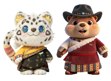 据悉,土拨鼠“阿土”的设计灵感来自高原上活泼的喜马拉雅旱獭,圆嘟嘟的身子配上藏式服饰,既有高原的野生萌趣,也带着康巴人的真诚与热情;雪豹“阿布”则以珍贵的高原雪豹为原型,融入甘孜州州花——贡嘎海棠,展现出这片土地的自然和谐,也传递着灵动与坚韧的生命力。