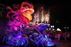 广州融创乐园鳌鱼花车夜游巡演 广州市文化广电旅游局 供图