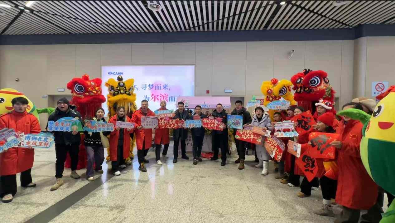 此次快闪活动生动展现了岭南文化的独特魅力。在哈尔滨太平国际机场到达区,“暖冬财神”与“花篮妹妹”向来往旅客派发花束、红包以及具有广东特色的文旅礼物,结合醒狮互动表演,吸引众多旅客驻足。