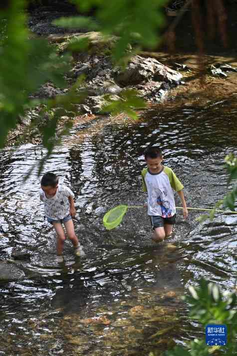 暑假期间,浙江省余姚市四明山镇的乡村迎来旅游旺季,不少家长带着孩子来此游玩,乐享假日时光。(新华社记者 黄宗治 摄)