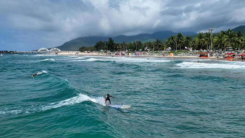 依山傍海的万宁日月湾,水质清澈,海水年平均温度在26.5℃左右,全年都适宜冲浪。冲浪成为奥运会比赛项目后,这项小众运动逐渐进入大众视野,越来越多的人开始尝试挑战这一项目。日月湾也吸引了大批冲浪体验者们前来,成了远近闻名的“冲浪小镇”。