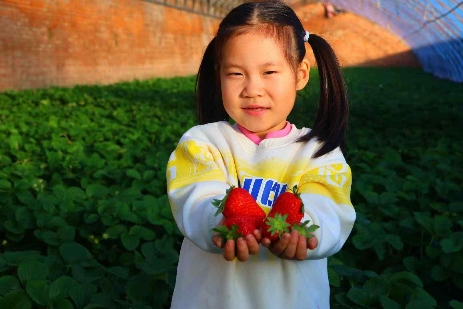 小游客在辛庄村草莓种植园温室大棚摘草莓 受访者 供图